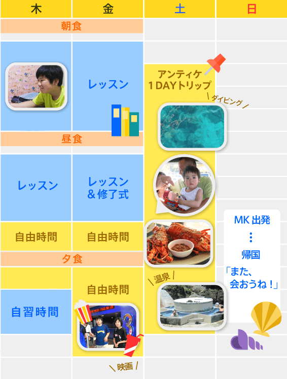 お子様にとって早くから異なる言語・文化に触れることはとても重要なことです。 治安がよく、ゆったり過ごせるイロイロは、親子様やお子様連れのグループ様の滞在地として最適です。 楽しくわかりやすい英語のレッスンはもちろん、イロイロ市内を散策しながら現地の人たちと交流することで、他の都市での留学では得がたい貴重な体験が可能となるでしょう。